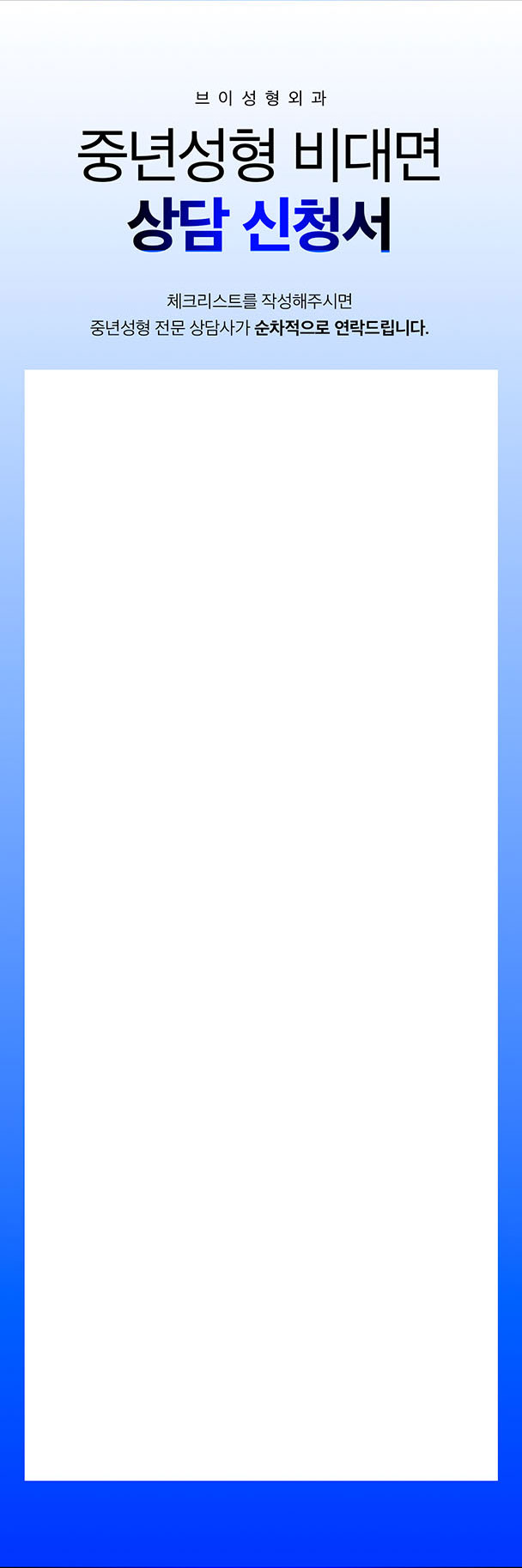 수집된 개인 정보는 상담 및 브이성형외과의 정보성 안내용도로만 사용되며 사용 목적 완료 후 즉시 폐기됩니다. 타인 연락처 입력(연락처 도용) 시 법적 처벌의 대상이 됩니다.