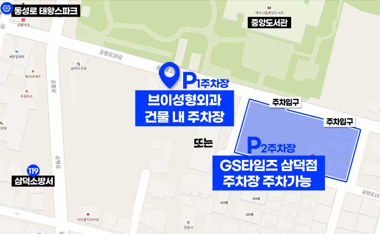 지하철 : 1,2호선 반월당역 10번 출구 내비게이션대구광역시 중구 공평로 10길 18(삼덕동 2가 17-1) |