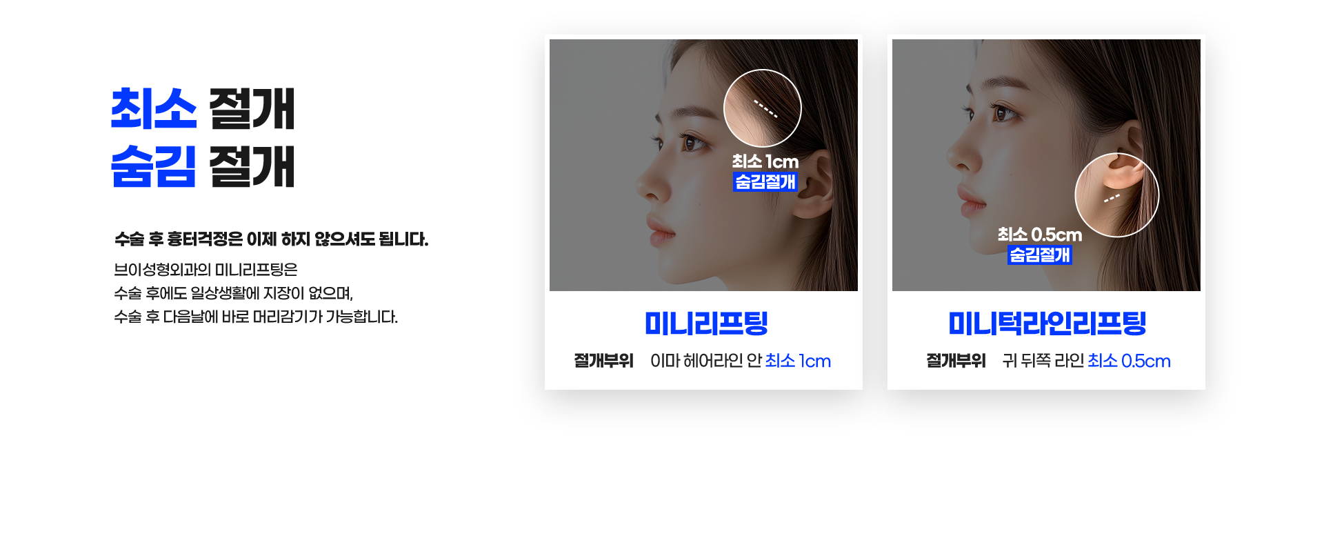 헤어라인 안쪽·귀 뒤라인 최소절개라인으로