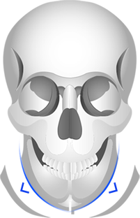 3D사각턱 축소술에서 뼈의 절제라인을 앞턱의 끝까지 연결하는 것입니다.