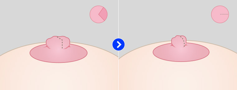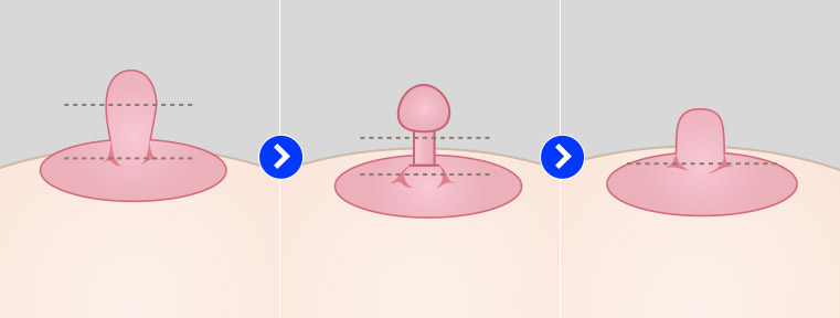 유두를 유륜에 봉합하여 유두의 길이를 낮추어 줍니다.