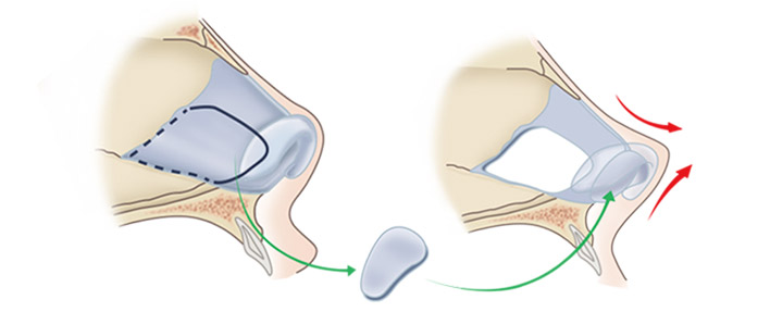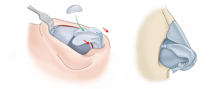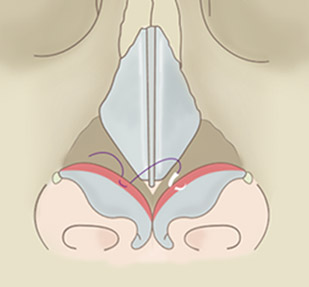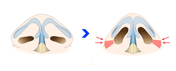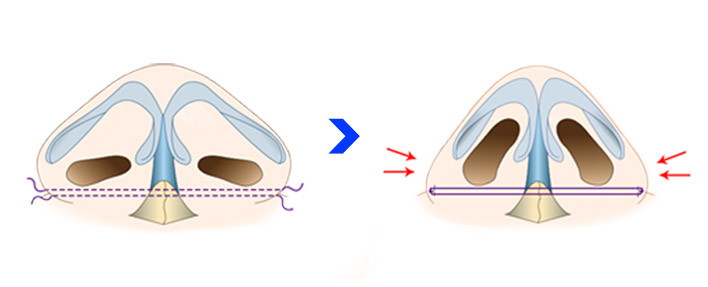 코 끝을 이루는 날개 연골을 재배치하는 방법이 사용되기도 합니다.